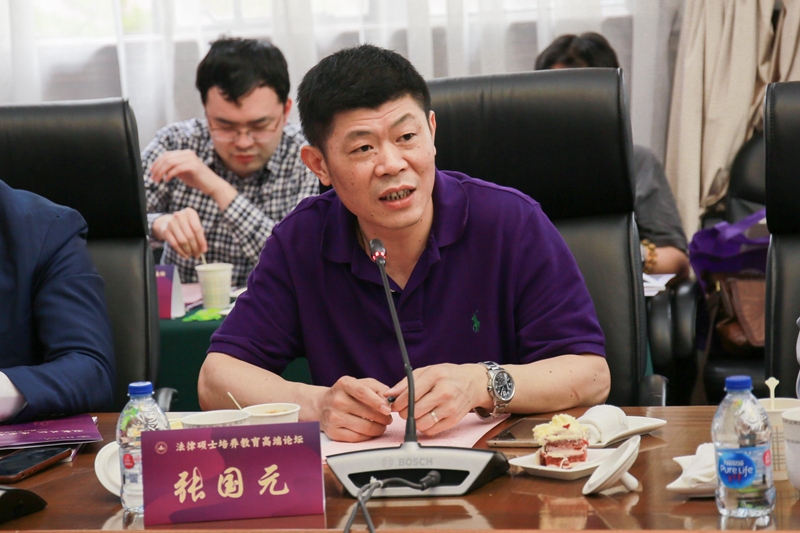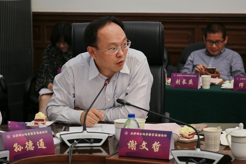 2019年6月26日,由法硕中心主办的“法律硕士培养教育高端论坛”在长宁校区交谊楼圆桌会议室顺利举行。校党委副书记、校长叶青,副校长张明军,法硕校友专家代表上海市人大常委会副主任,上海市总工会主席、党组书记莫负春,上海市高级人民法院副院长盛勇强、上海市第三中级人民法院副院长俞秋玮、上海市徐汇区人民检察院副检察长谢闻波、上海君合律师事务所主任邵春阳、上海普世律师事务所主任李向农、上海鸿孚律师事务所主任苏剑飞、上海之合网络科技有限公司CEO洪祖运,法硕各专业方向组组长韩强、何萍、张国元、唐春、谢文哲、张虎,法律硕士校友会理事会全体成员,研究生教育院领导、各职能科室负责人、法硕中心全体工作人员50余人出席会议。会议由研教院党委书记刘丹华主持。
