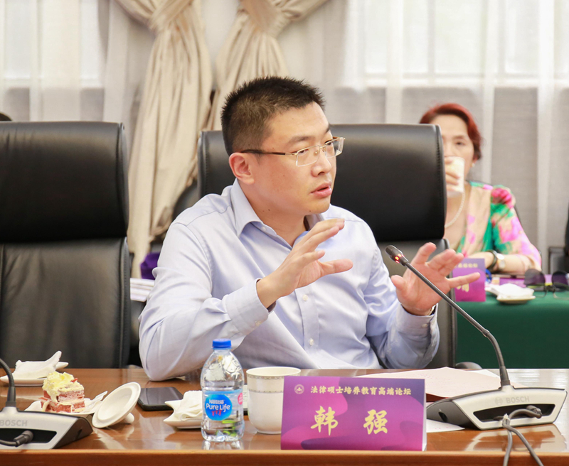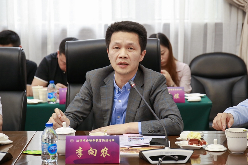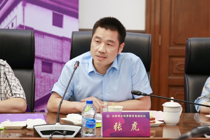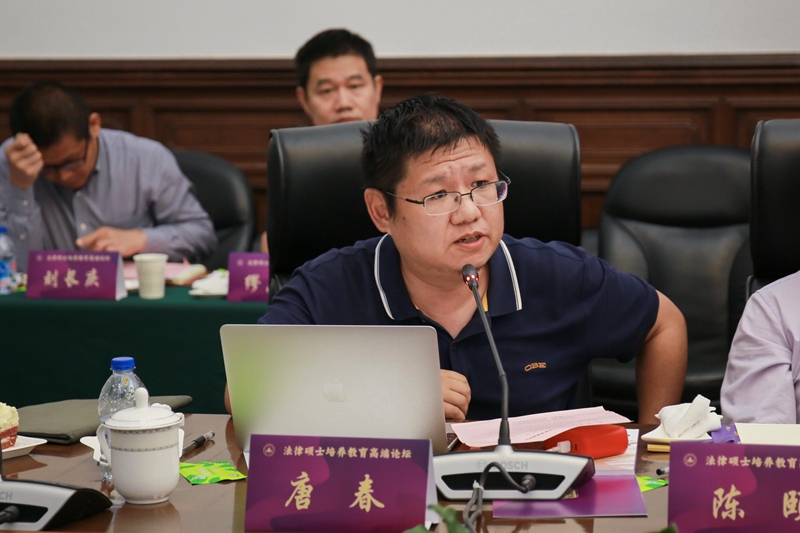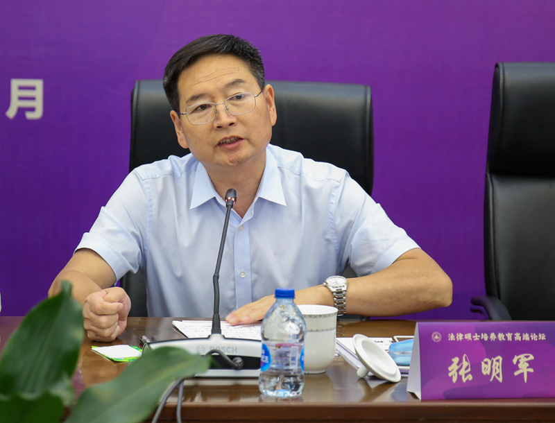 张明军同志致欢迎辞,他对各位法硕专家校友、老师们的到来表示欢迎。他提出,在互联网大数据和人工智能迅猛发展的今天,如何适应国家治理现代化对于民主法治的需求对法学教育内容和模式变革提出了新的挑战。他希望通过本次论坛,集思广益各方建议,更好的开展法硕的培养和教育,为社会输送更多的高端法律人才。