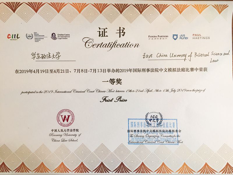 2019年7月6日至13日,我校代表队出征2019年国际刑事法院中文模拟法庭比赛海牙决赛周,半决赛总成绩与东吴大学并列第三,最终获得一等奖。参加本届大赛的我校代表队,由具有丰富理论与实践经验的刑事司法学院马贺老师、法律学院邓晓霞老师和国际法学院的张国元老师担任指导老师, 由研究生教育院的危红波老师带队,参赛队员有来自研究生教育院的张雨、法律学院的李桐、国际法学院的陈虹宇和知识产权学院的陈珊、欧文杰5位同学。