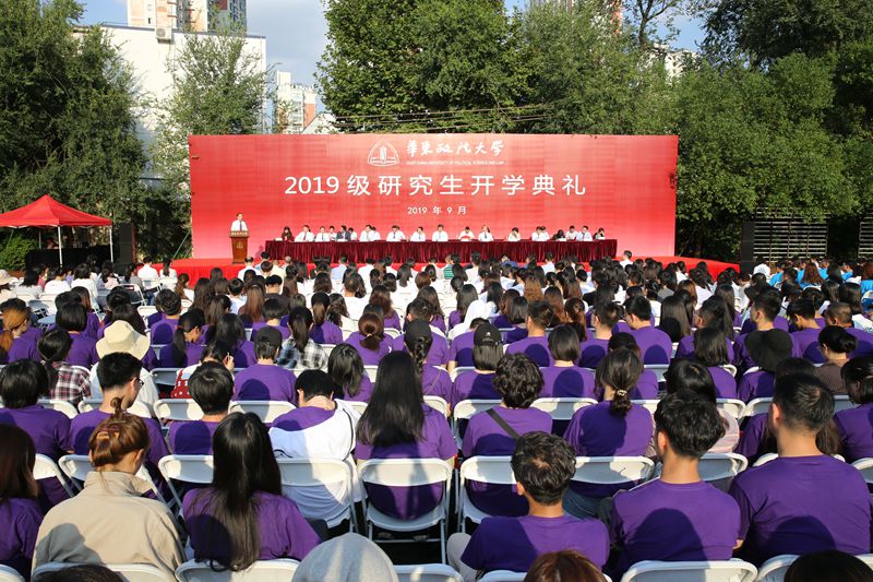 典礼在庄严肃穆的升旗仪式中拉开序幕。校研究生会主席程东林,研究生新生代表陈倚天,研究生导师代表、法律学院副教授吴一鸣,校友代表、上海市律协青年工作委员会副主任、上海博和律所执行主任王思维先后发言。
