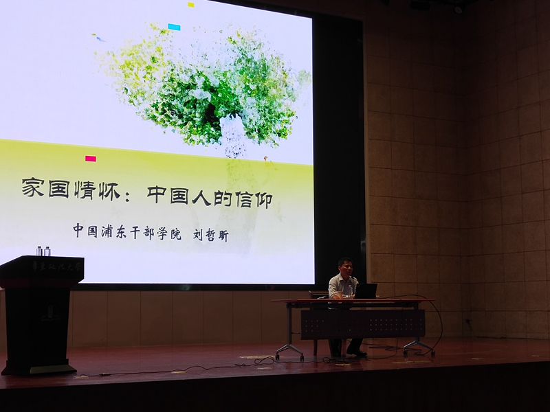 9月25日上午,我校“研究生格致大讲堂”第126讲暨2019级研究生新生入学教育在松江校区缘法厅举行。中国浦东干部学院学术委员会委员、机关纪委副书记、法律与人文综合教研部主任、我校国际金融法律学院兼职教授刘哲昕应邀为我校师生作“家国情怀:中国人的信仰”讲座,讲座由我校研究生教育院副院长张勇教授主持。