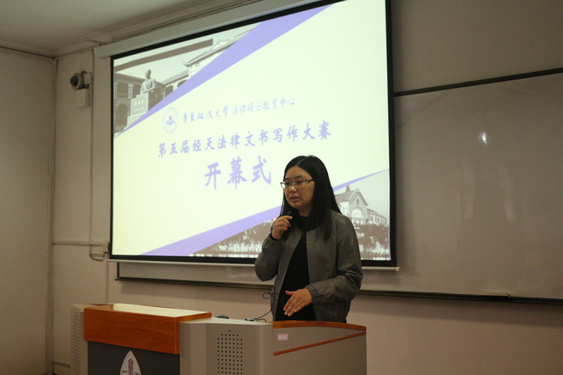 决赛开幕式上,研究生教育院院长、法律硕士教育中心主任洪冬英教授首先代表赛事主办方祝贺各位选手顺利进入决赛。她在致辞中介绍了本次大赛的报名情况以及初赛的评审情况,她表示法律文书写作是一项基本的法律职业技能,通过不断的研习和训练法律文书写作,能够提升法学生的专业技能和水平,为未来的法律职业生涯打下坚实的基础。她预祝参赛选手发挥出自己的最佳水平,取得满意的成绩。