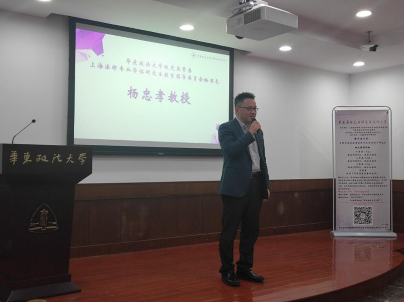 校党委常委、上海市法律硕士专业学位研究生教育指导委员会秘书长杨忠孝,研究生教育院副院长张勇,静安区人民检察院副检察长曹坚,博和律师事务所高级合伙人胡婧律师,大成律师事务所高级合伙人王汉齐律师等嘉宾为获奖选手颁奖。