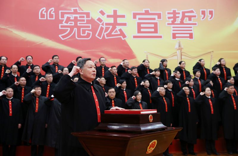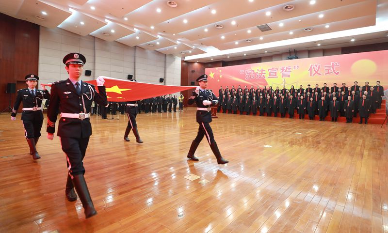 下午1时30分,市高院法官宪法宣誓仪式正式开始。仪式由市高院党组成员、政治部主任陆卫民主持,市高院领导、部分全国政协委员、市人大代表、部分新闻媒体记者等出席活动。市高院党组书记、院长刘晓云受市人大常委会委托向今年新任命的法官颁发了任命书,并带领85名新任命法官面对国旗、国徽庄严宣誓,作出了忠于宪法、忠于祖国、忠于人民的庄严承诺。宣誓后,两名法官代表依次发言。声声庄严的宣誓、铿锵有力的发言,彰显了法官的职业尊荣感、使命感和责任感。