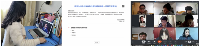 为确保线上教学质量,一方面,开展为期一周的线上调查问卷,收集任课教师答卷82份、研究生答卷1087份,对师生线上教学开展情况的意见归纳分析,包括线上教学的形式和内容、组织和管理、网络平台技术支持等方面内容,向各学院、任课教师反馈沟通,及时调整和改进线上教学。另一方面,做好线上督导准备工作,包括管理员网上培训、制定督导任务书和督导情况记录表,从3月9日起开展线上教学巡查,确保教学质量不缩水、教学水平不降低。