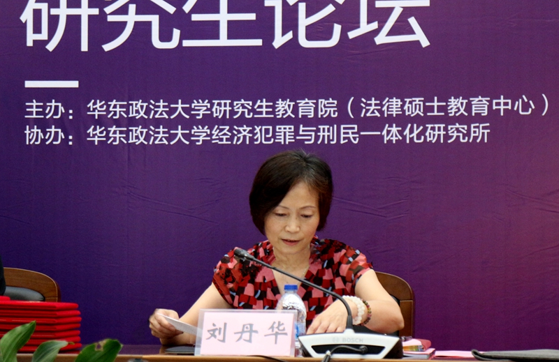论坛开幕式由研究生教育院党委书记刘丹华主持。研究生教育院院长、法律硕士教育中心主任洪冬英教授通过远程视频的方式发表了欢迎词。洪院长对此次论文竞赛成功举办表示了祝贺,并对各位专家教授,研究生参赛者,以及华政夏令营营员们的到来表示了欢迎。她指出,“经天杯”刑民一体化理论与实践研究生学术论坛就是学校开展研究生创新教育,提升研究生学术氛围的重要举措。本次论坛的举办得益于京衡律师事务所王亚军律师团队大力支持和鼎力相助,对王亚军律师和他的团队表示衷心的感谢,相信广大法学研究生通过参与本次论坛,学术研究能力一定会得到提高,必有助于将来成为法学精英和社会栋梁。