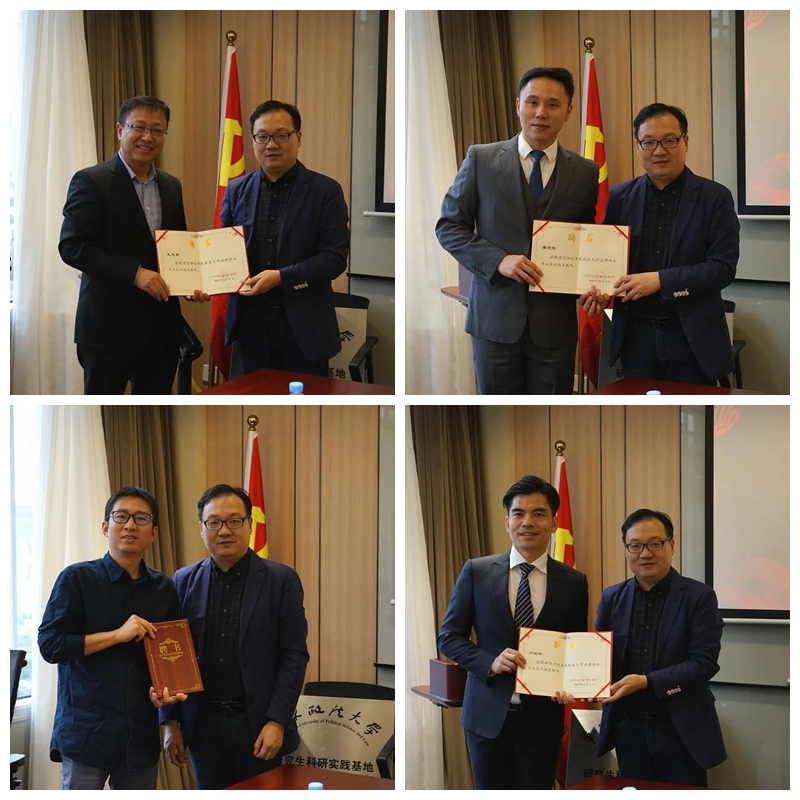 为进一步加强法律人才培养,华政研教院党政联席会研究决定,聘任屈建军、王志勇、沙佳伟、翁才林、孙黎卿、潘若微六位律师为法律硕士专业实训导师。张勇副院长向首批获聘的六位律师颁发了聘书。