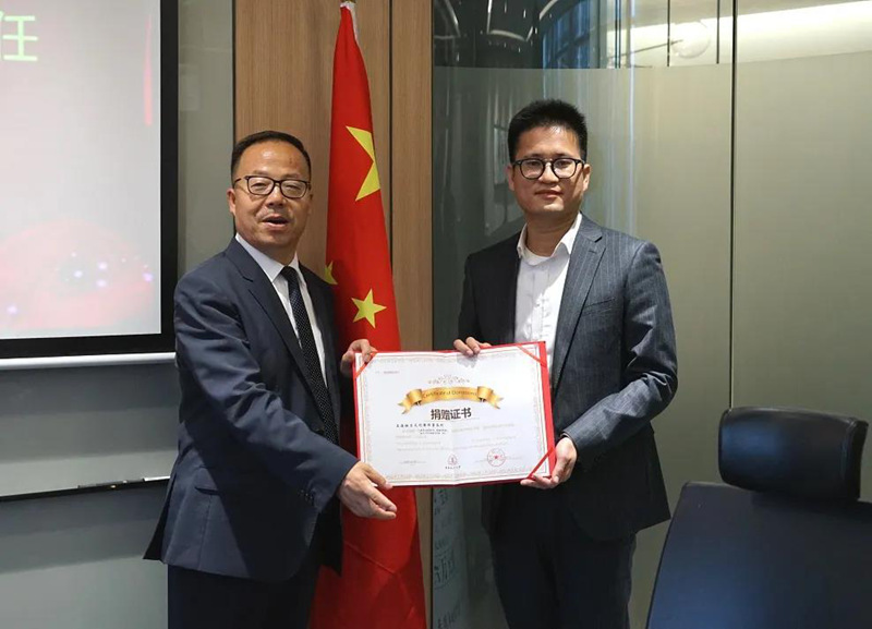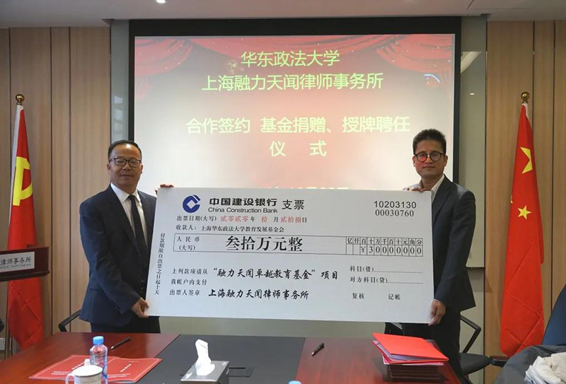 仪式上,陈赛金处长与王世喜主任代表双方签署了“融力天闻卓越教育基金”捐赠协议,陈赛金处长接受律所的捐赠并向本所颁发捐赠证书。