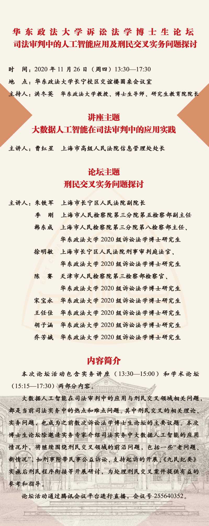 华东政法大学诉讼法学博士生论坛:司法审判中的人工智能应用及刑民交叉实务问题探讨