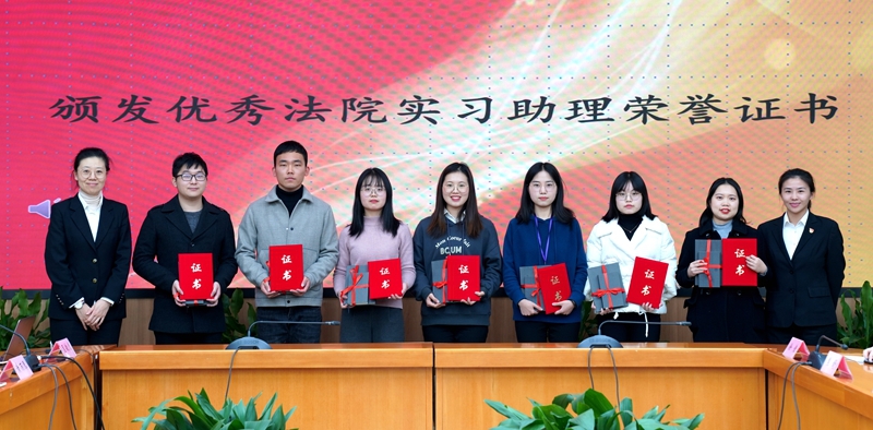 1月14日下午,一中院第八期“法院实习助理”项目总结大会在一中院召开。会议由一中院政治部曹晶清科长主持,她对我校研究生教育院对项目的大力支持表示感谢,赞扬了同学们虚心求教、勤勉尽责的工作态度,同时提出了三个希望:希望大家能与带教老师保持联系和交流;希望大家能够把在实习中学到的知识带回学校的学习中去;希望大家保持学习的动力和心态,进一步提升自身专业能力。会议对潘盈等9名优秀实习助理进行表彰,实习助理们也分享了自己的心得体会。