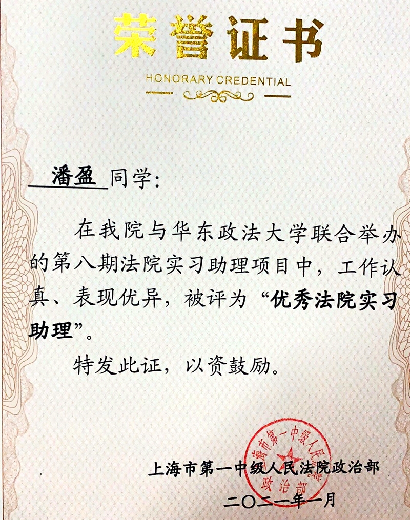 近日,我校2020年下半年与上海市第一、第二、第三中级人民法院联合开展的研究生“法院实习助理”项目顺利结项。在常态化疫情防控背景下,64名实习研究生严格遵守防疫规定,按时定期上报体温和行程,有条不紊地完成实习任务,并取得良好成效,17名研究生获评优秀实习助理。
