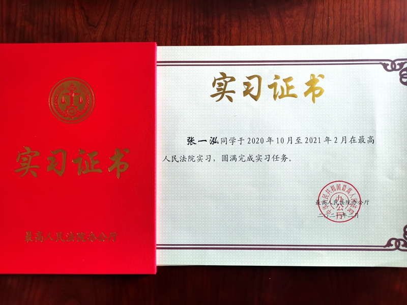 2020年9月,最高人民法院重新启动了因疫情暂缓的第九批法律实习生的遴选工作,从国内30余所高校中选拔了65名法律实习生。我校硕士研究生张一泓、庄智同学经过层层选拔,成功入选。在审判部门与综合部门轮岗的创新实习机制下,张一泓同学进入知识产权法庭岗位,庄智同学进入民二庭的审判业务岗位及国合局的综合行政岗位实习。在实习导师的指导下,两位同学认真负责、勤勉踏实、积极出色地完成了各项工作任务,得到了法院领导和老师的高度评价。