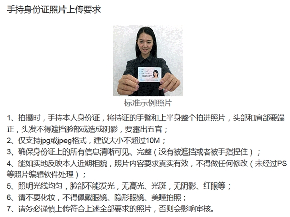 照片要求身份证边框完整,字迹清晰可见,亮度均匀。