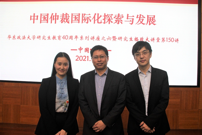 11月4日晚,我校研究生教育40周年系列讲座第六讲在长宁校区举办,上海国际经济贸易仲裁委员会秘书长王唯骏和案件管理一部部长宋茹祎,应邀为我校师生作了题为“中国仲裁国际化探索与发展”的讲座。此次讲座也是我校研究生格致大讲堂第150讲,由我校互联网+法律大数据平台副主任、博士生导师王勇教授担任主持。