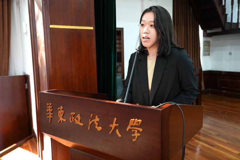 上海市宝山区人民法院党组成员、政治部主任吴隽作为优秀组织单位代表发言。她介绍了宝山法院对本期项目的精心组织和妥善安排,分享了循序渐进的三步走带教法,即法律助理从初期的熟悉审判工作到接下来的辅助法官工作,再到深化提高阶段的结合实践研究、草拟法律文书。她还分享了该院法律助理的学习成果和实践感悟,并强调,项目也为法院培养和储备了我国法治建设所需的高端人才,实现了双赢。