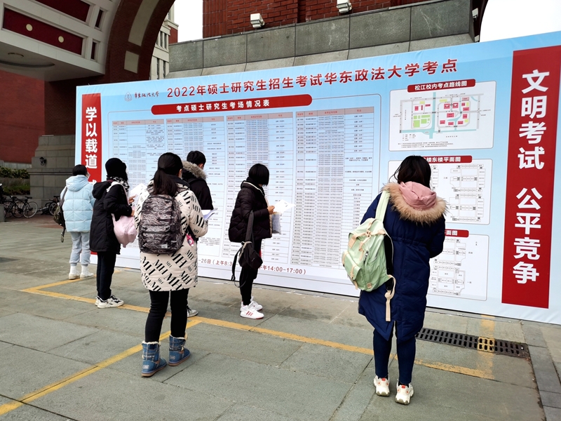截至12月26日17时54分,华东政法大学考点2022年硕士研究生招生考试(初试)平稳结束。看似两天紧张有序的考试,实则需要研招办一学期至一年严谨认真的准备,也只有在研究生院准备充分、全校上下协同奋战的前提下,才有底气、有魄力在防疫组考工作上交出一份考生和社会满意的答卷。