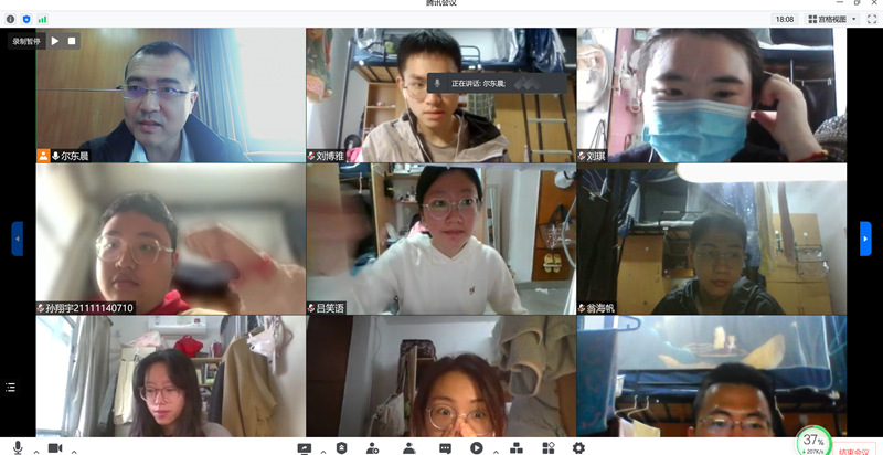 在学校各职能部门、各学院的支持保障和任课教师的共同努力下,3月14日,研究生课程在两校区均以线上形式开展,应开研究生课程63门,除4门课程因疫情特殊情况暂停外,其它59门课程如期授课,上线研究生共2285人次。老师们在教室、会议室、办公室等场所授课,学生们在宿舍听课,各学院也以教学班为单位建立了微信群、QQ群等即时通讯渠道,师生信息交流和互动顺畅良好。根据信息办对网络带宽的动态监测以及研究生院和各学院领导巡课、研究生教学督导听课来看,线上教学开展顺利,网络流畅,线上课堂秩序井然。
