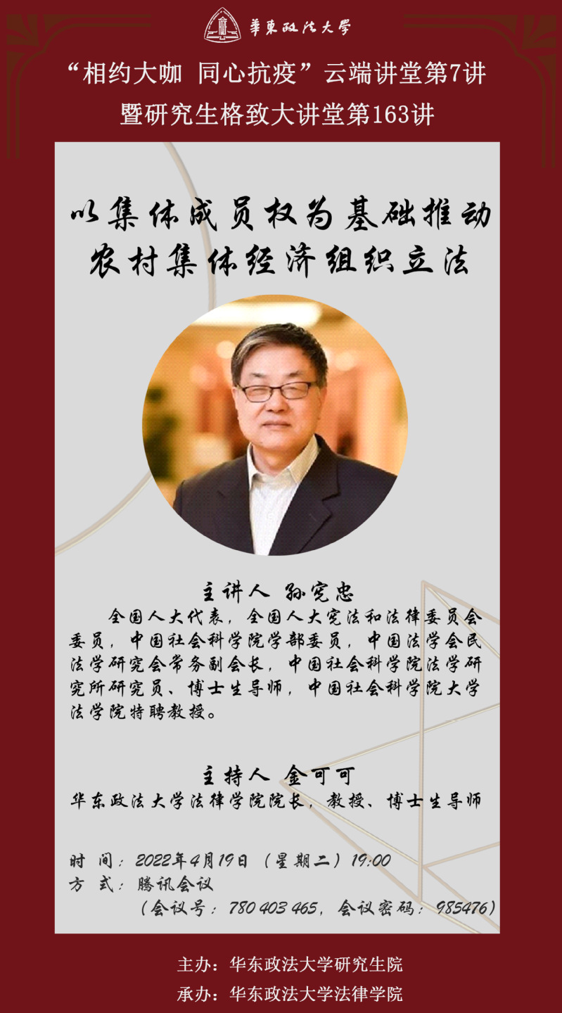“相约大咖 同心抗疫”云端讲堂第7讲:以集体成员权为基础推动农村集体经济组织立法