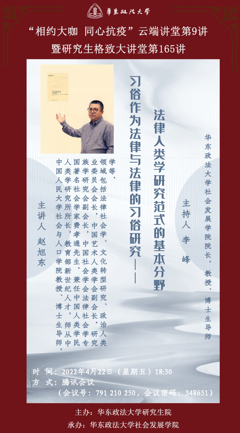 “相约大咖 同心抗疫”云端讲堂第9讲:习俗作为法律与法律的习俗研究 ——法律人类学研究范式的基本分野
