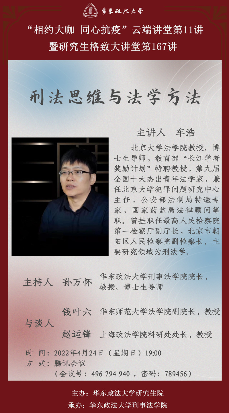 “相约大咖 同心抗疫”云端讲堂第11讲:刑法思维与法学方法