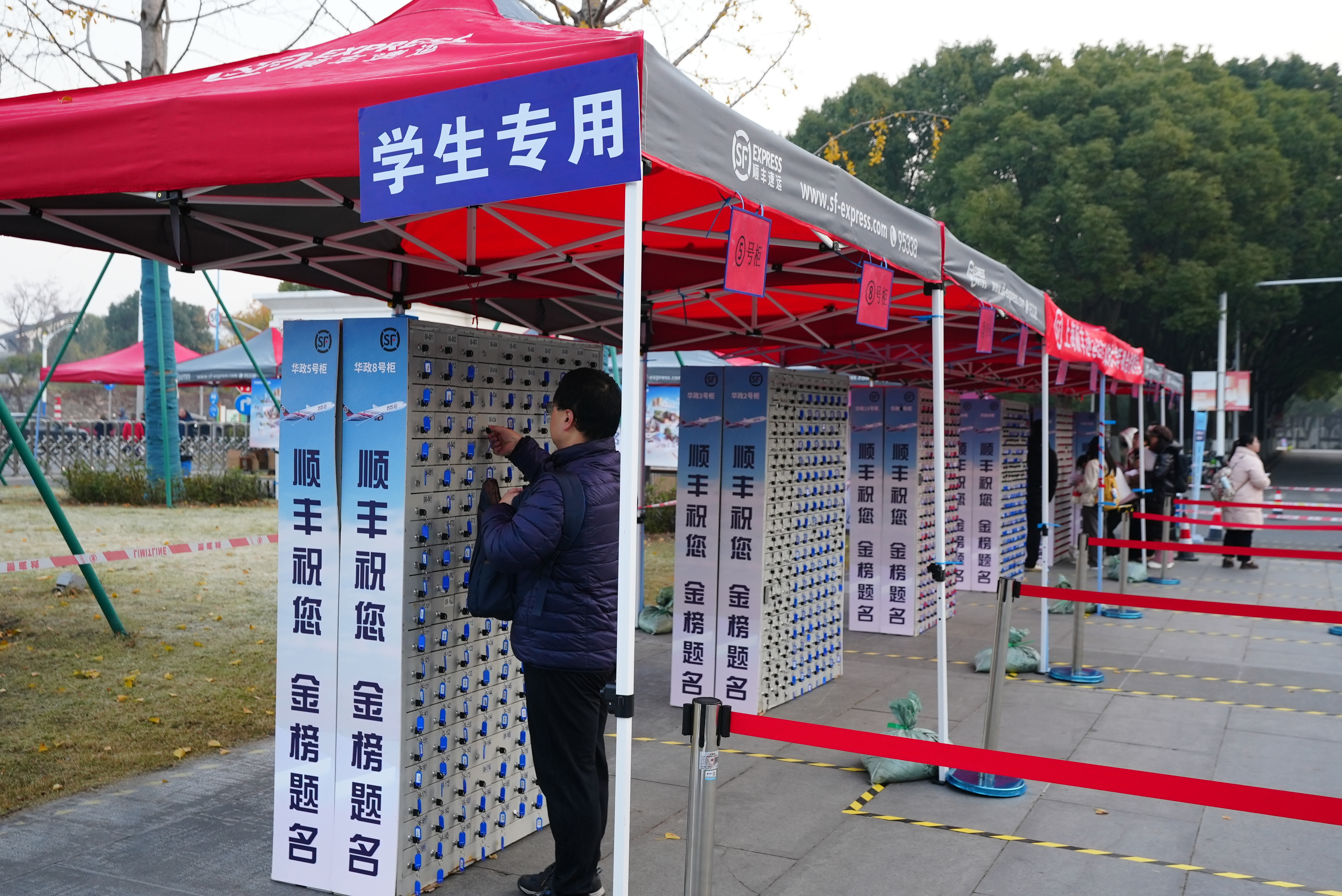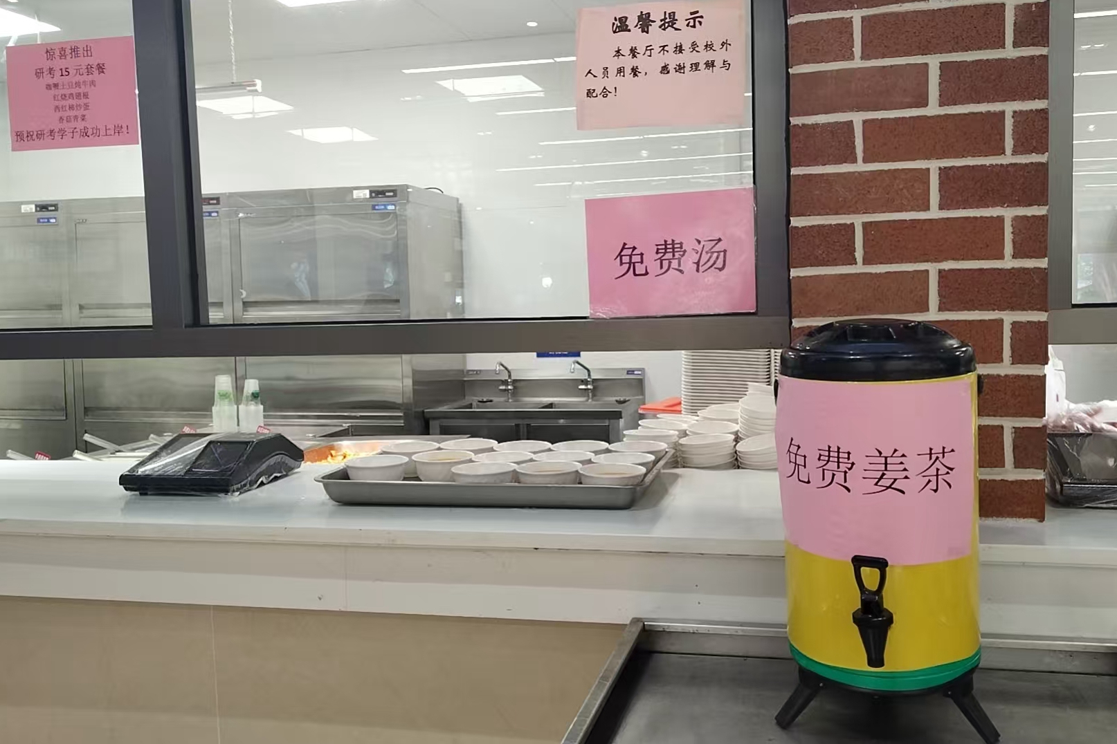 考务人员和后勤保障人员早早到岗,克服困难、不畏严寒、坚守岗位,严肃落实规范要求,做到考务管理到位、安全保密到位、后勤保障到位,开展了一系列暖心举措。提前考虑低温天气下考生候考问题,为了避免考生在严寒天气中等待,考点比常规时间提前半小时开放。充分利用学校现有资源,安排刚刚大修完毕的一食堂作为候考区域,积极为考生提供热水、研考套餐等温馨服务和舒适的午休场所。考务老师在合法合规前提下保障考生赴考,为考生提供紧急打印准考证的服务。同时,在继去年在考试封闭管理区租赁3000个免费手机存放柜的基础上,增加后勤人员力量,通过多次检查环节,避免考生手机遗失。