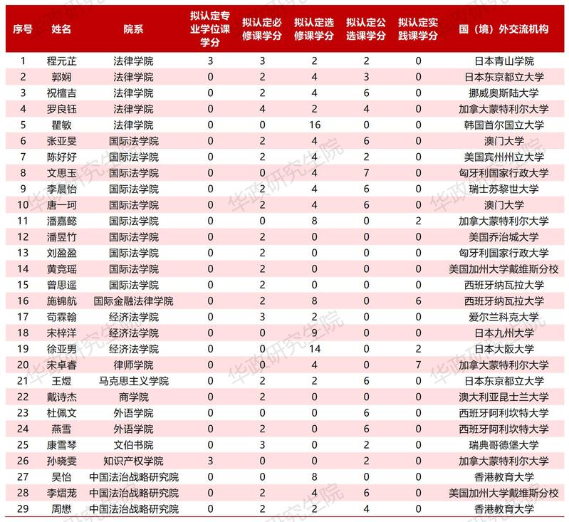 根据《关于在校研究生出境交流学习课程学分认定的指导意见》文件的精神,研究生院组织开展了2025年春季学期研究生赴国(境)外学习课程学分认定。经学生申请、学院组织进行认定后,研究生院审核,共对程元芷等29名同学在国(境)外学习所获学分进行认定。