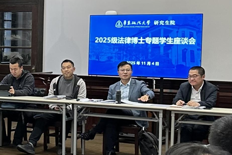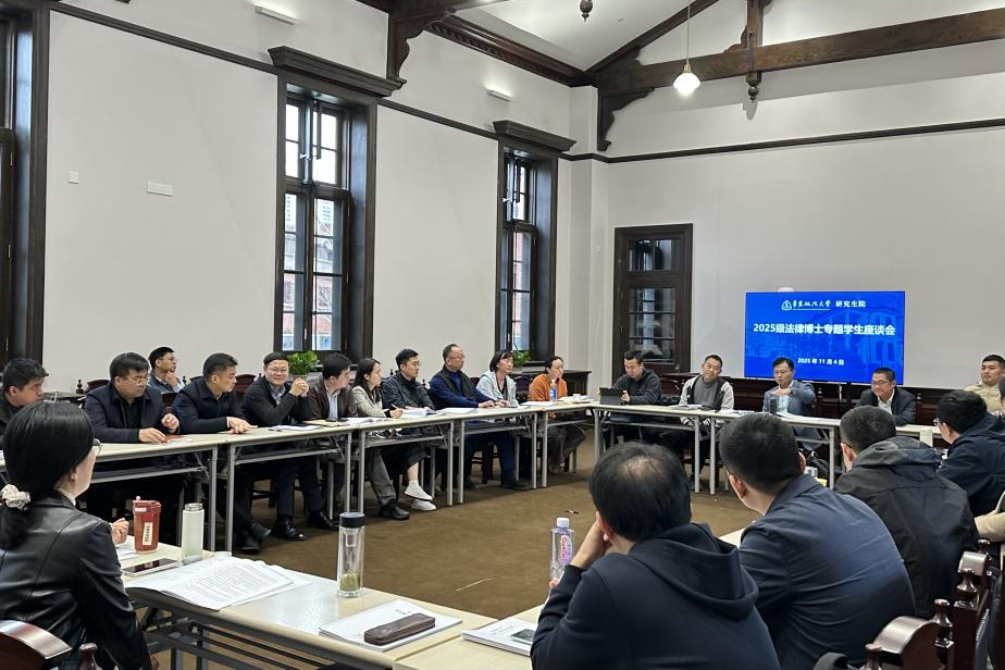11月4日,我校在长宁校区东风楼举办首届法律博士学生专题座谈会。座谈会旨在顺应新时代法治人才培养要求,进一步创新法律博士专业学位研究生培养模式,为有效搭建学校与学生之间深入沟通的桥梁收集宝贵的一手意见和建议。研究生院副院长史红光、培养办公室主任朱彦、学位办袁辉老师以及2025级法律博士研究生共40余人参加会议。会议由史红光主持。